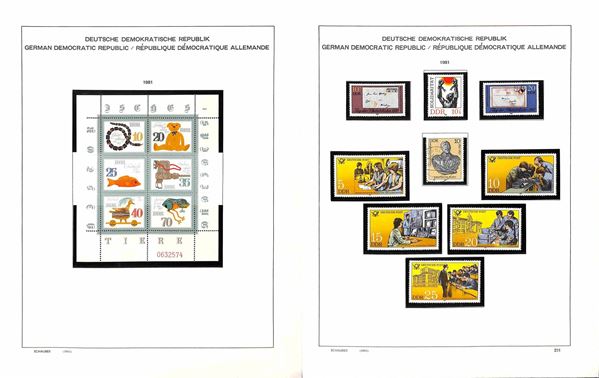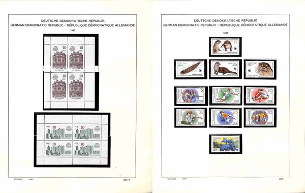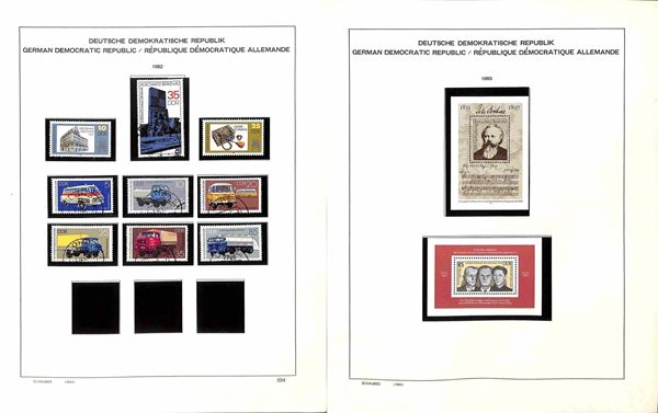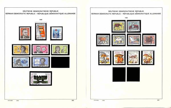 GERMANIA DDR - 1980/1990 - Inizio di collezione mista (con presenze di valori nuovi e valori usati) del periodo (con foglietti) in album Schaubek (con taschine) - ottimo insieme perfettamente conservato (come nuovo)