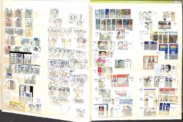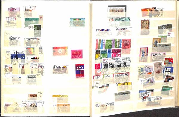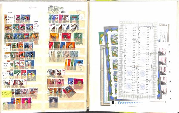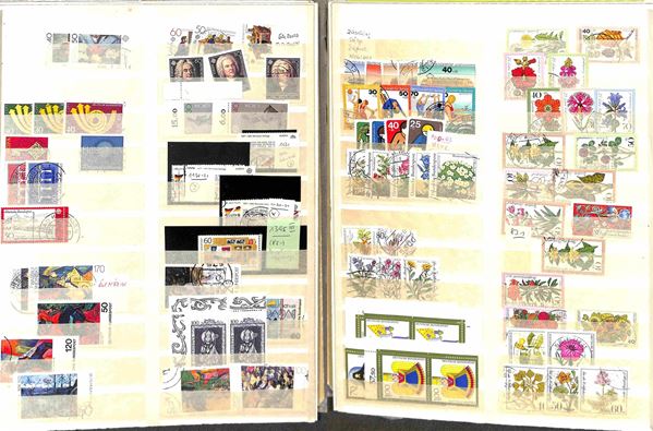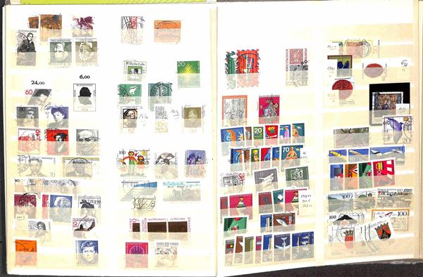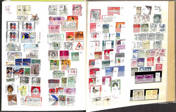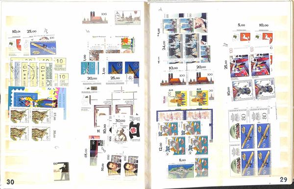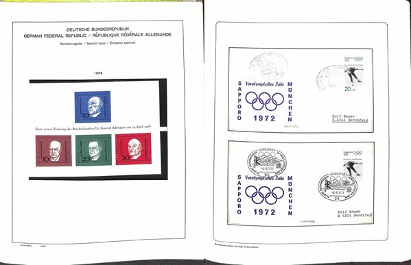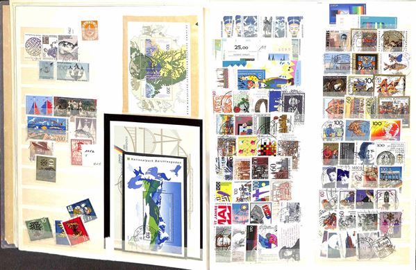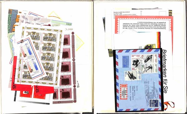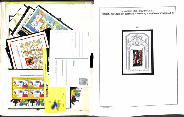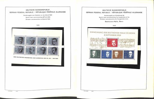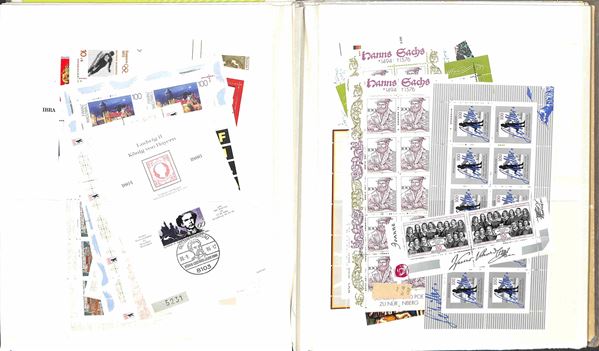 GERMANIA FEDERALE - 1959/1997 - Collezione di oltre 90 foglietti nuovi e usati del periodo con ripetizioni + valori nuovi + molti valori usati (non conteggiati) su fogli Schaubek in cartella a molle - notate anche buste FDC e varie - buon insieme