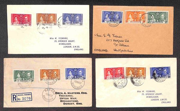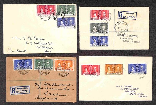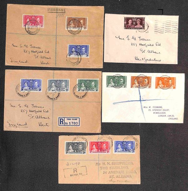 GRAN BRETAGNA - COLONIE - Nozze Reali - insieme di 45 buste diverse affrancate con i valori della serie da 45 diversi paesi delle colonie - principalmente raccomandate - insieme molto interessante - da esaminare