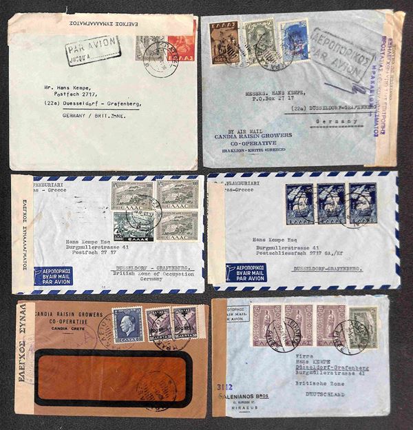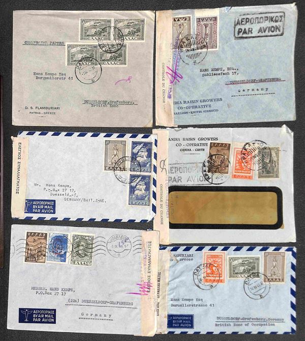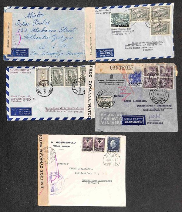 GRECIA - 1937/1949 - Lotto di 29 buste con aerogrammi tutti indirizzati a Dusseldorf con qualche presenza - merita esame