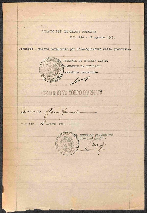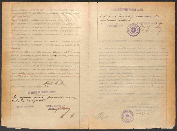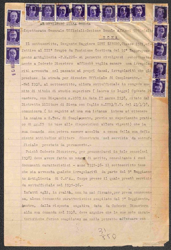 III° Gruppo di Posizione Costiera - sedici pezzi del 50 cent Imperiale (251) su documento di richiesta di promozione 10.5.43