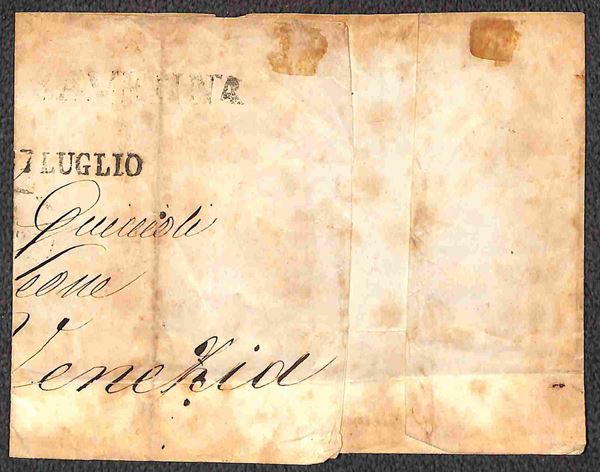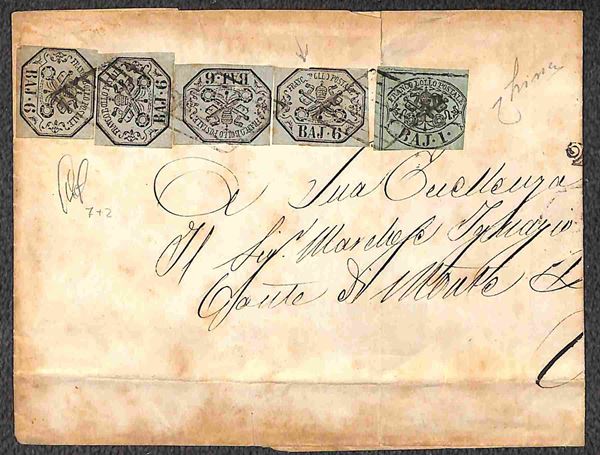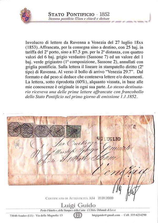 Involucro di lettera affrancata per 25 baj con 1 baj (2) + quattro 6 baj (7) da Ravenna a Venezia del 27.7.... - cert. L. Guido