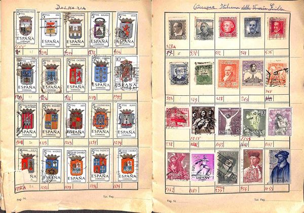 MONDIALE - Miscellanea di valori in massima parte usati applicati con linguella su 8 libretti a scelta d'epoca - da esaminare