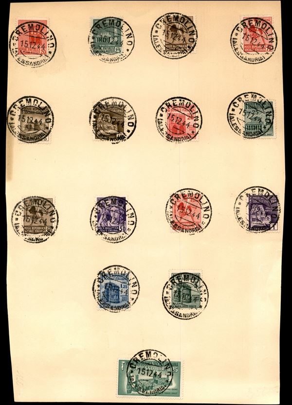 Monumenti Distrutti (496/499 + 502/511 + 23 Espressi) - Emissione completa - 15 valori usati su foglio - Cremolino 15.12.44