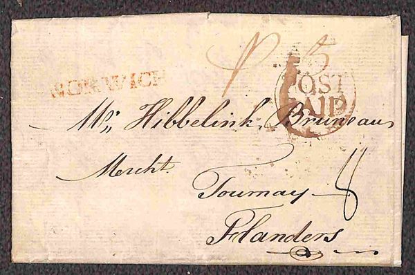 Norvich (in rosso) + Post Paid (in cerchio) + p.5 (manoscritto) - lettera del 1.1.1791