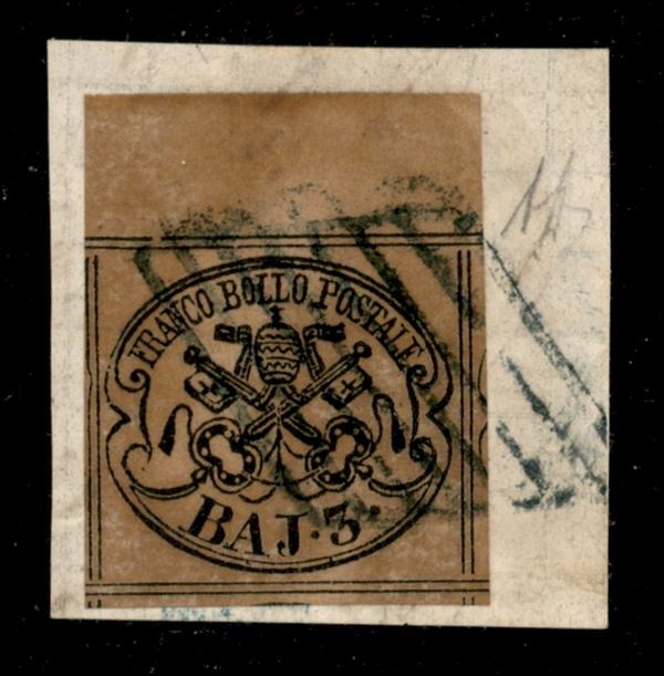 Otto filetti - 3 bai (4Aa) usato su frammento - grandi margini e bordo foglio in alto - Diena + Giulio Bolaffi