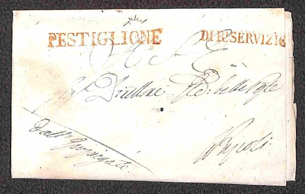Pestiglione + Di R. Servizio (entrambi in rosso) - intera lettera per Napoli del 2.8.1820 - Chiavarello