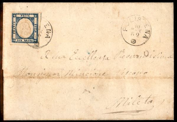 Polistena - 2 grana (20) su lettera per Mileto del 10.9.1862