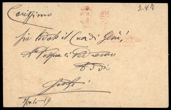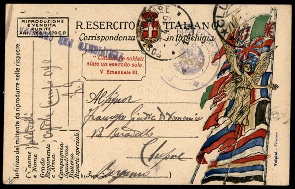 Posta Militare 144 - Ospedale da Campo N.030 - due cartoline postali in franchigia per Clusone del marzo/aprile 1919