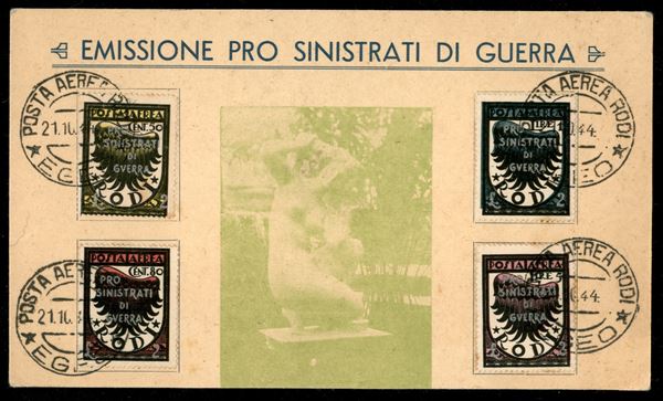 Pro Sinistrati (56/59) - serie completa su cartoncino dell'emissione usata a Rodi 21.10.44