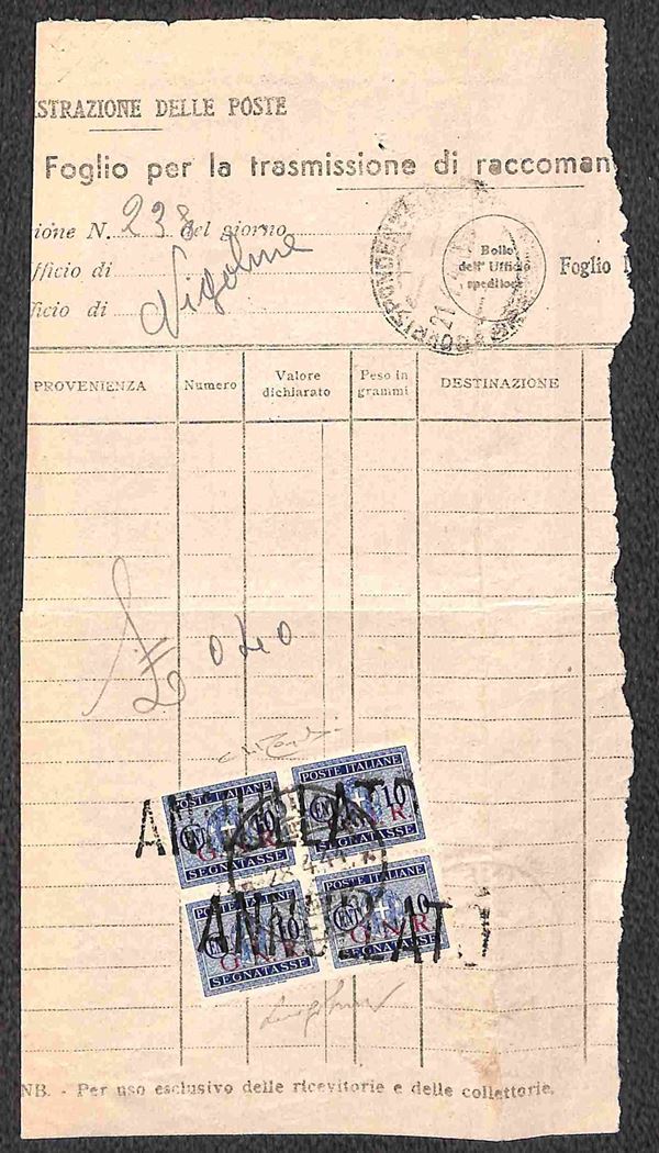 Quartina del 10 cent (48/I) usata su modulo amministrativo da Brescia a Nigoline del 21.4.44 - Sirotti + Raybaudi