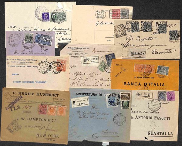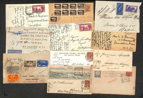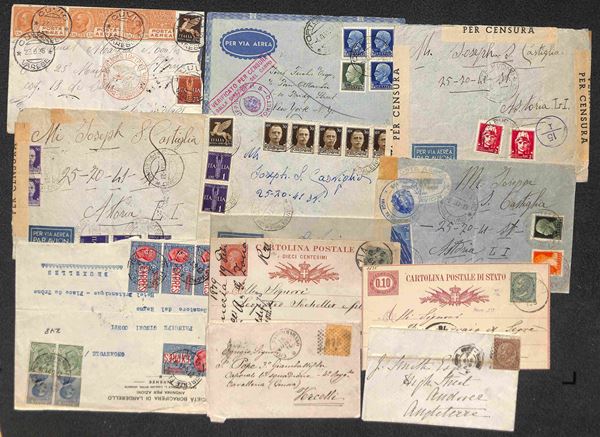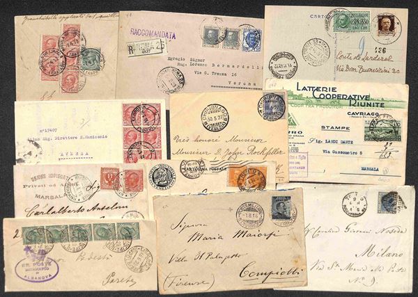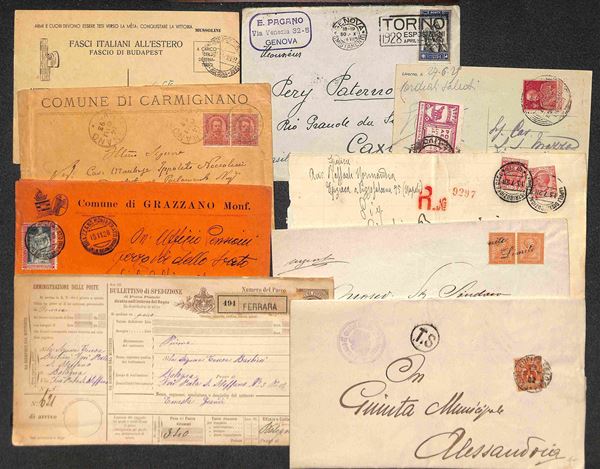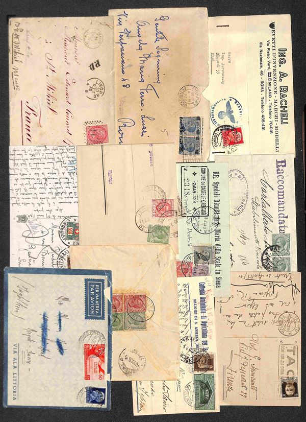 REGNO - 1876/1943 - Lotto di 87 oggetti postali (lettere + cartoline + interi postali) del periodo - interessante per affrancature e destinazioni - qualità mista - da esaminare
