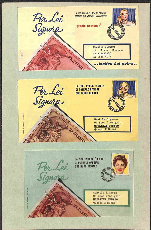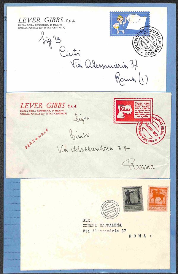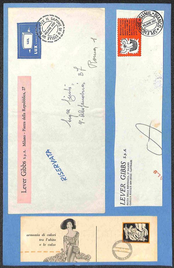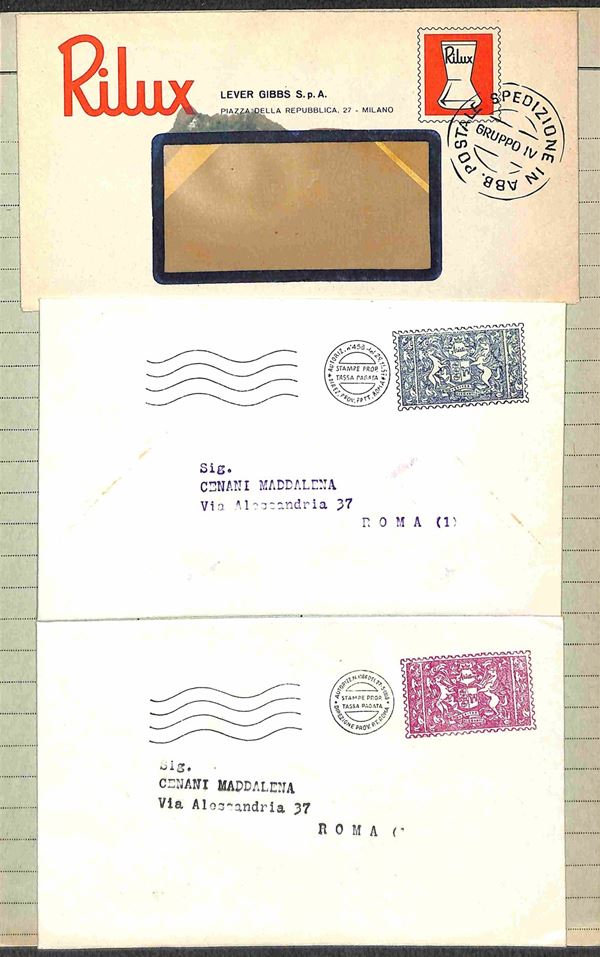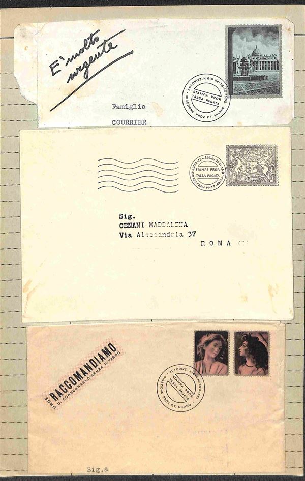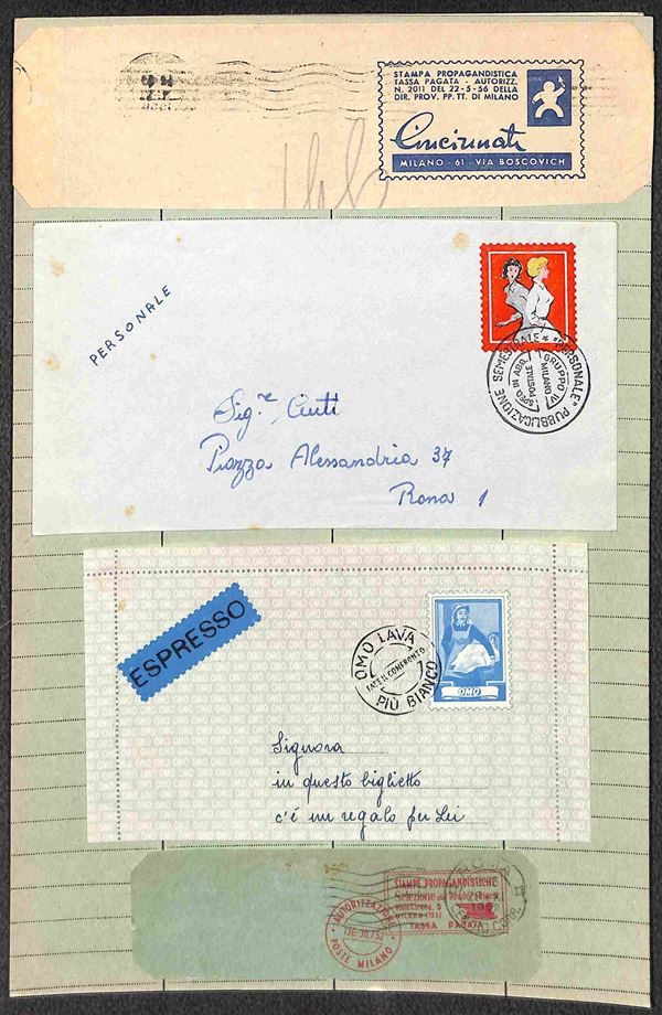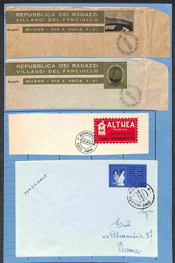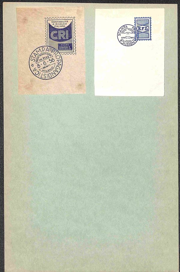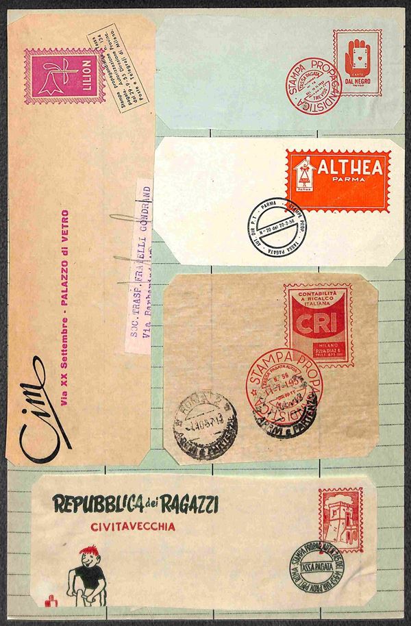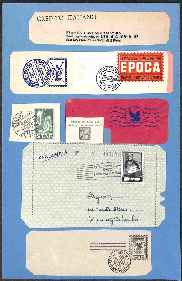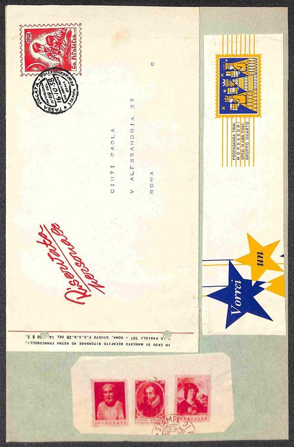 REPUBBLICA - 1953/1959 - Stampe Propagandistiche - Insieme di circa 40 oggetti postali tra buste e frammenti del periodo applicati su fogli artigianali - da esaminare