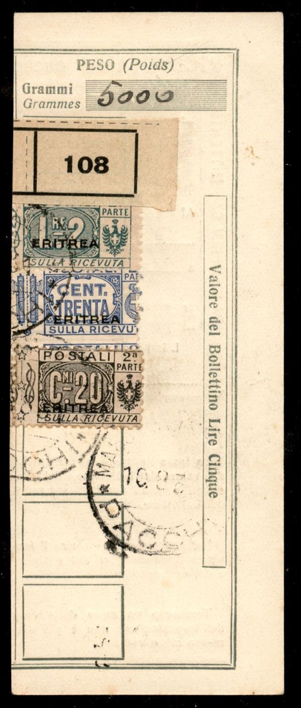 ITALIA / Colonie / Eritrea / Pacchi postali