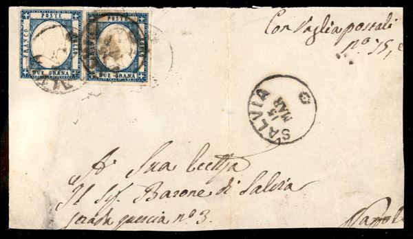 Salvia - grande parte di frontespizio (con Vaglia postali) per Napoli con due 2 grana (20) - Chiavarello