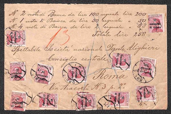 Splendida affrancatura di dodici esemplari del 60 cent su 60 (10) su assicurata da Drnis a Roma del 4.1.21 - non comune