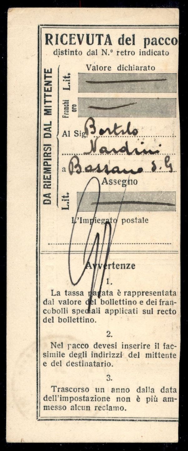 ITALIA / Colonie / Eritrea / Pacchi postali