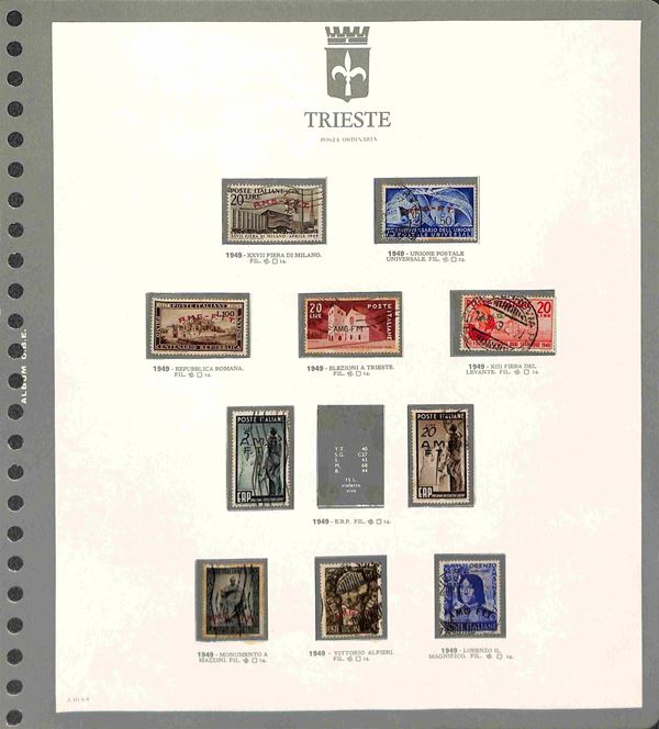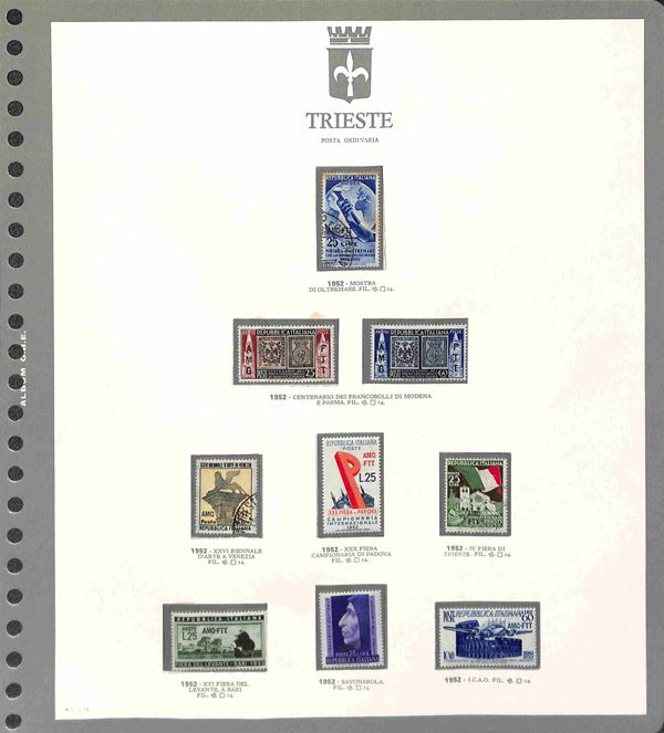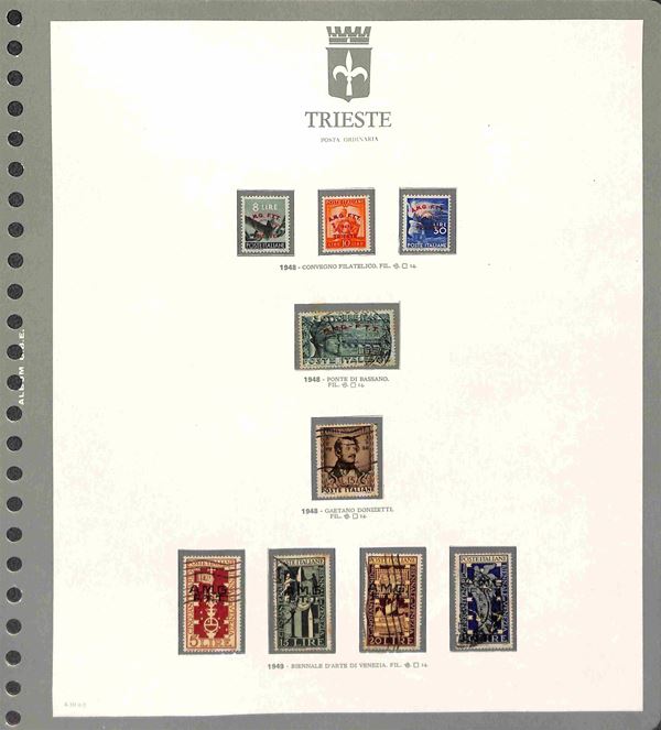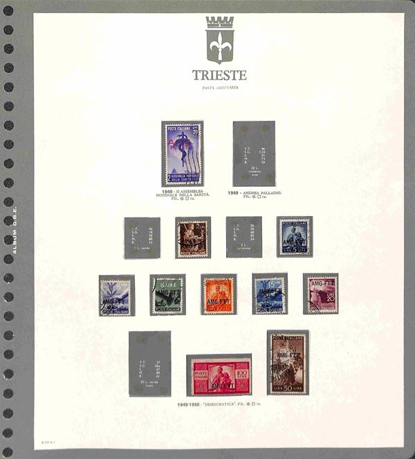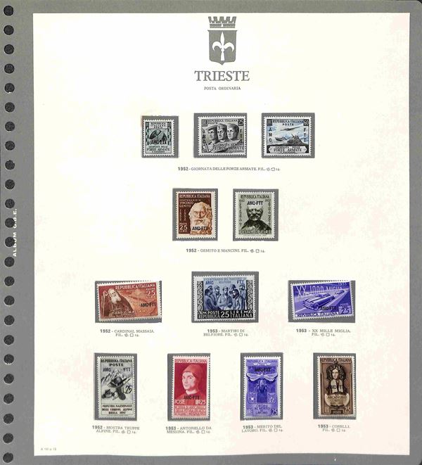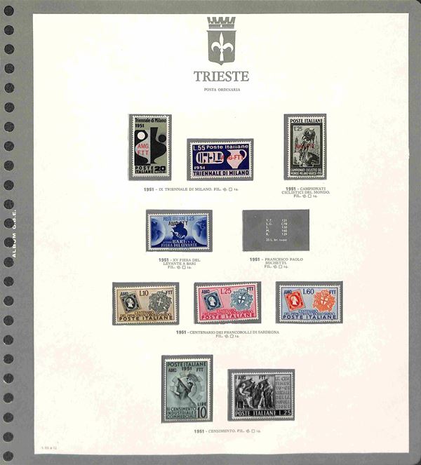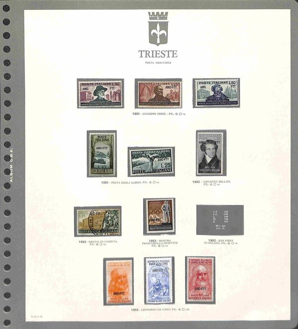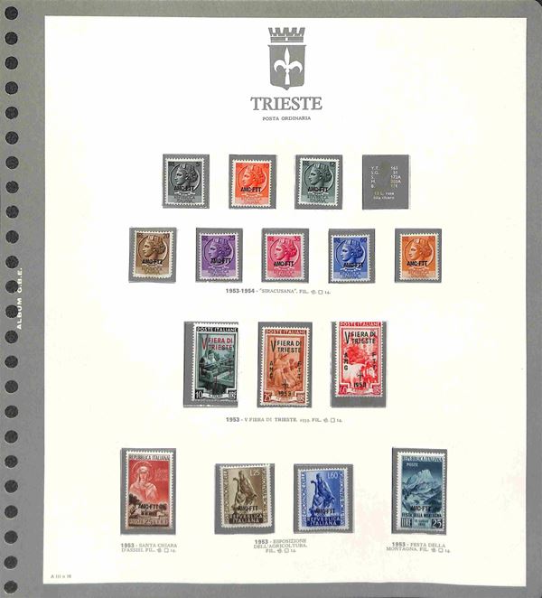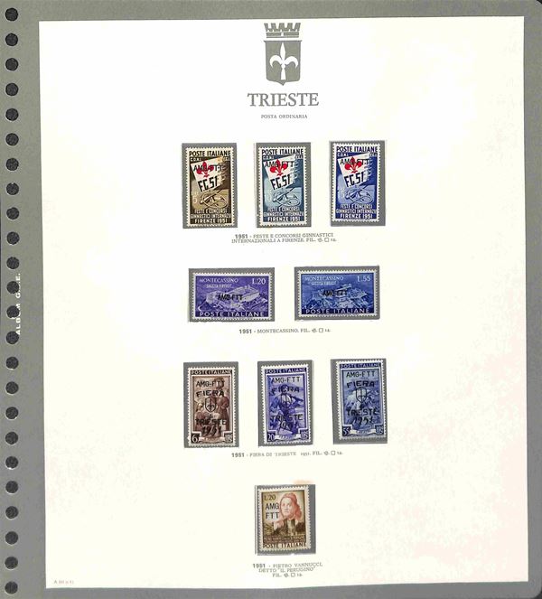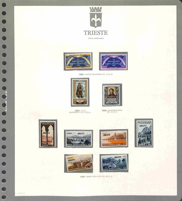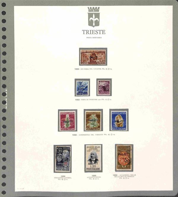 TRIESTE A - AMG-FTT - 1947/1954 - Collezione avanzata di valori eserie complete con alcune mancanze montata in album e fogli GBE - valore di catalogo oltre 800 €