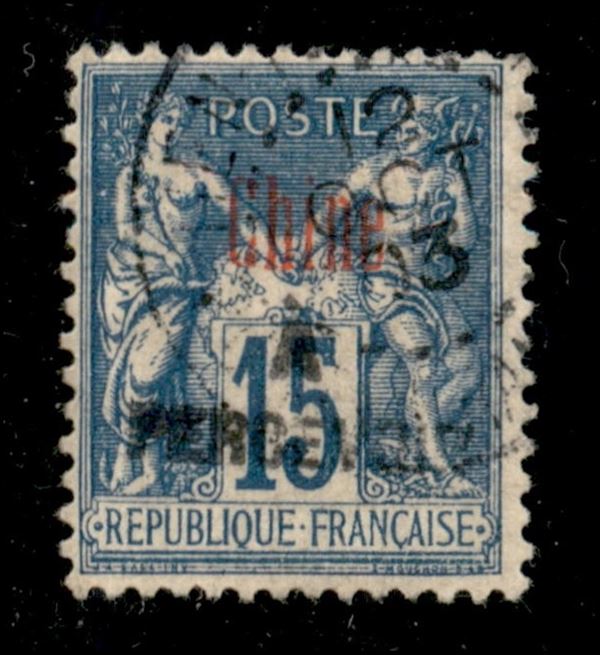 Uffici Francesi - 1903 - 15 cent (8c) con soprastampa nera - usato