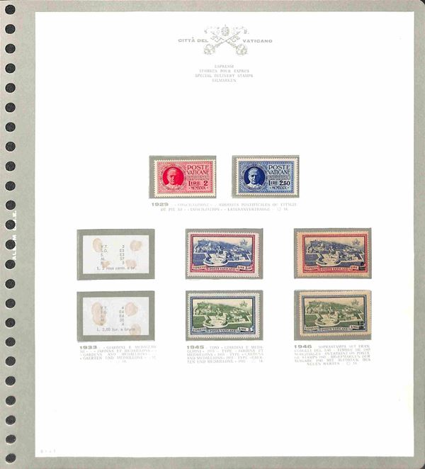 VATICANO - 1929/1986 - Collezione molto avanzata di valori e serie complete del periodo - posta ordinaria e servizi con diverse mancanze nel primo periodo ma con buone presenze montata in 2 eleganti album GBE - gomma originale integra e usati - valore di catalogo oltre 1.200 €