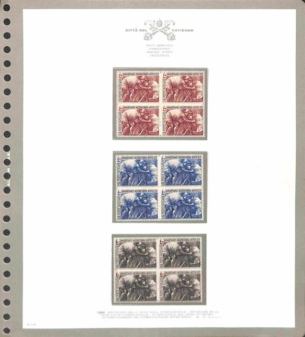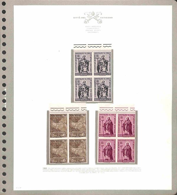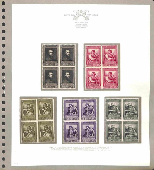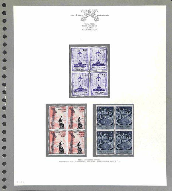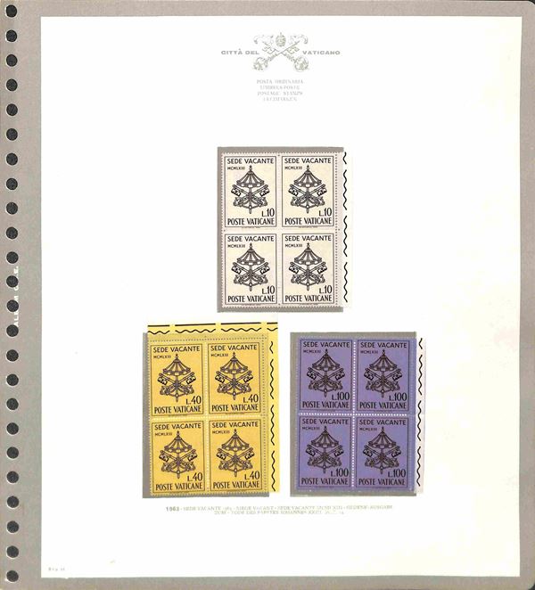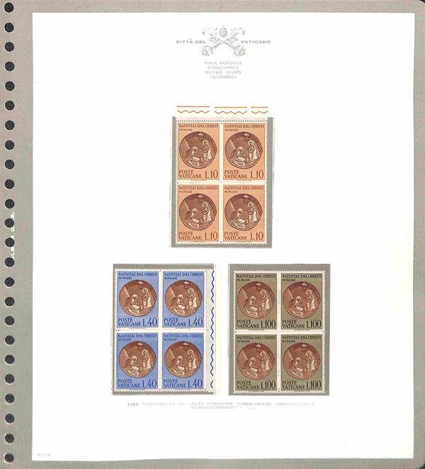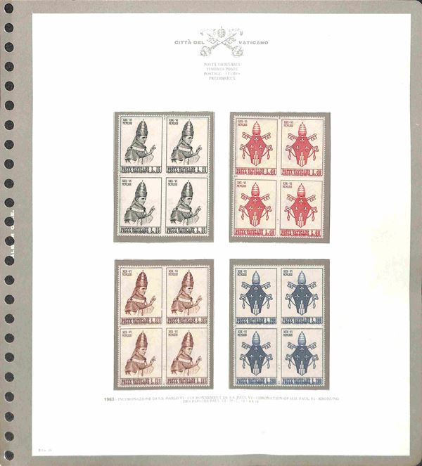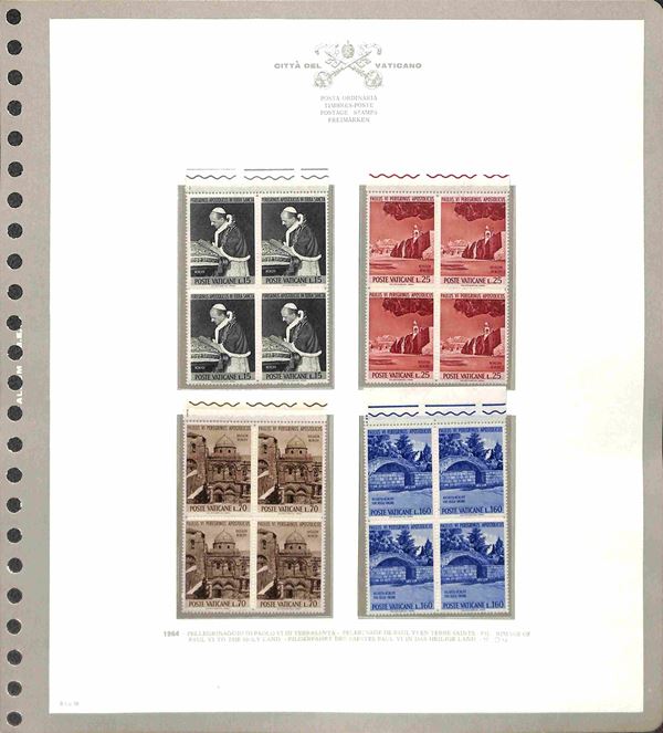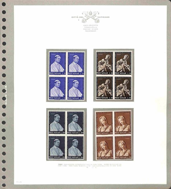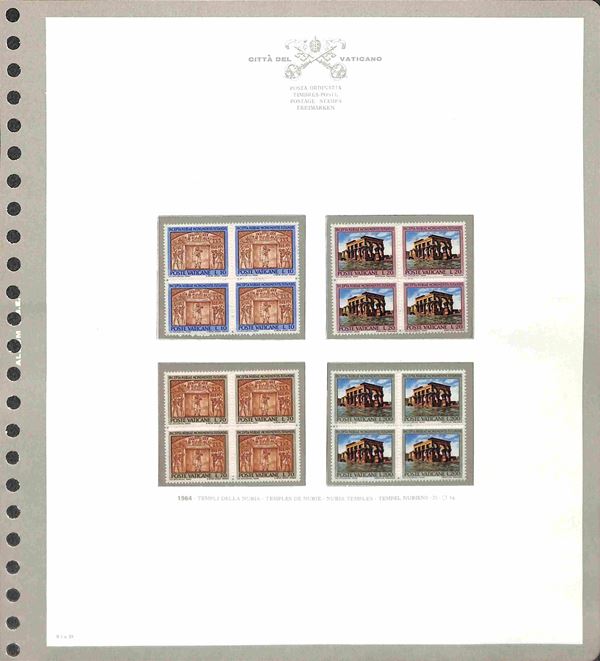 VATICANO - 1963/1985 - Collezione completa di valori e serie complete in quartine del periodo montata in 2 eleganti album GBE - gomma integra - valore di catalogo oltre 600 €