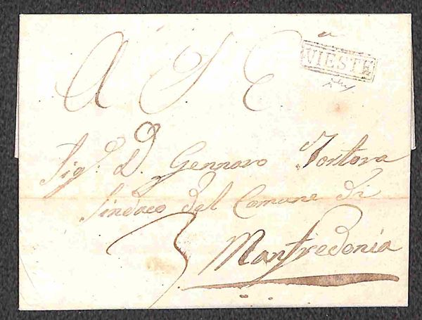 Vieste (ripetuto al retro sulla cialda) - intera lettera per Manfredonia del 25.5.1826 - Chiavarello