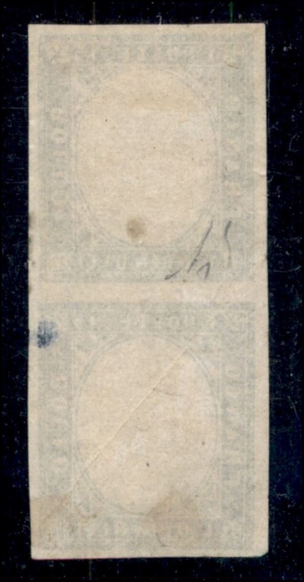 1863 - 15 cent (11m) - coppia verticale senza effigi - nuova senza gomma - leggera piega diagonale - Diena