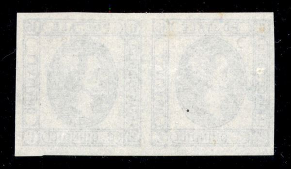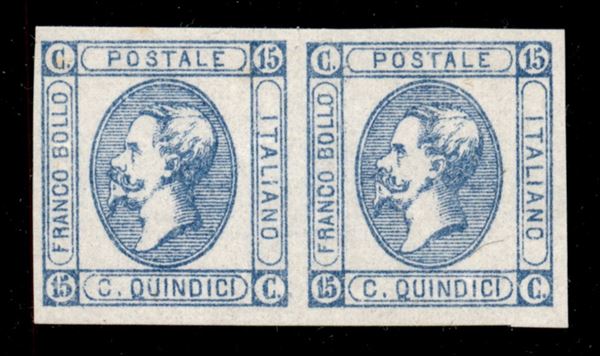 1863 - Resti di Stampa - 15 cent Litografico (12 - celeste chiaro) - coppia orizzontale - senza gomma (1300)