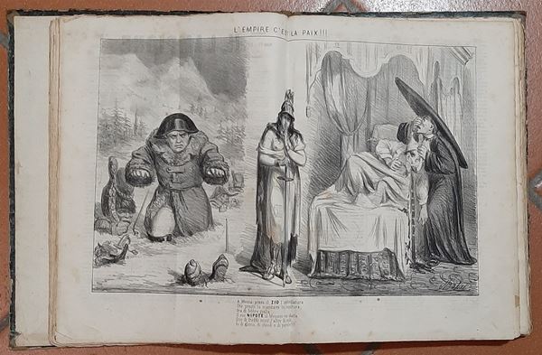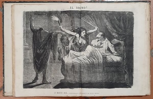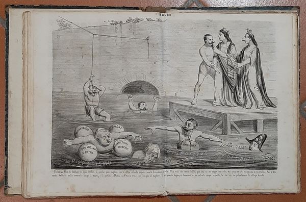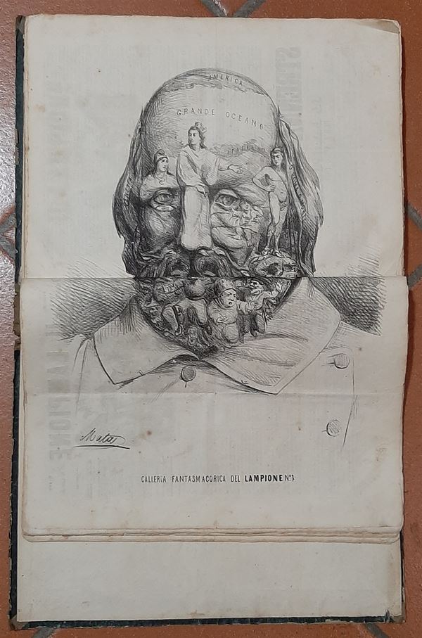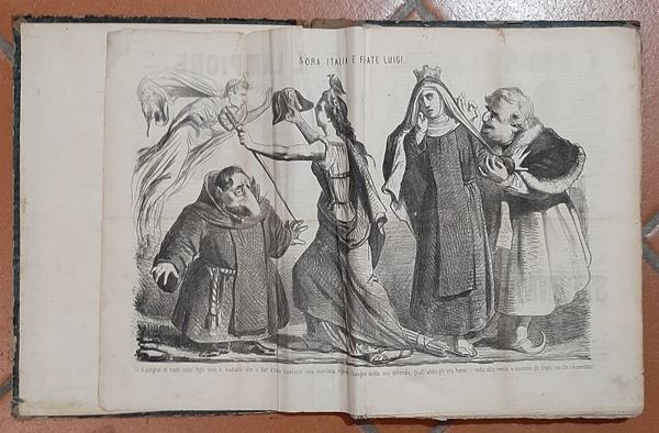 1863 - Splendida raccolta rilegata della pubblicazione bisettimanale "Il Lampione" del n. 103 del 3.1.63 aņ n. 201 del 30.12.63 con all'interno di ogni giornale un'acquaforte originale dell'epoca - bellissimo insieme in buono stato di conservazione