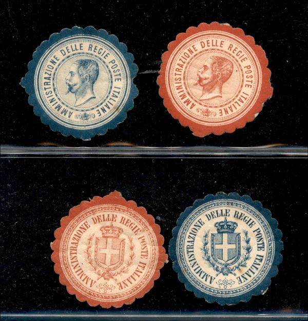 1864 - Saggi - Amministrazione delle Regie Poste Italiane - 4 valori (in rosso e blu) - gomma originale - Diena + Raybaudi