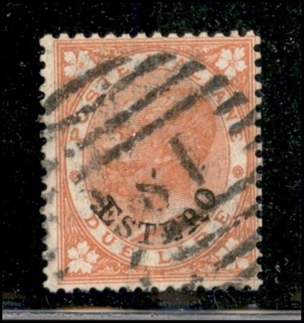 1874 - 2 lire Estero (9) - annullo numerale 180 Genova - cert. AG