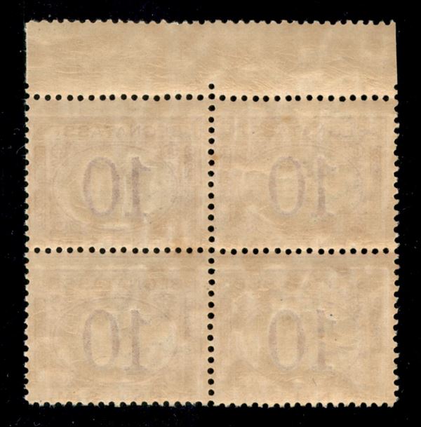 1890 - 10 cent (21 varietà la) - quartina bordo foglio con dentellatura orizzontale spostata in alto - gomma integra