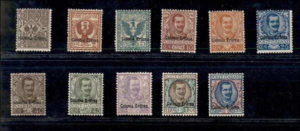 1903 - Vittorio Em. III soprastampati (19/29) - serie completa - gomma originale con traccia di linguella