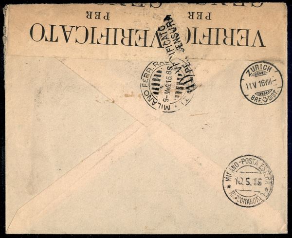 1916 (8 maggio) - raccomandata da Udine per Zurigo