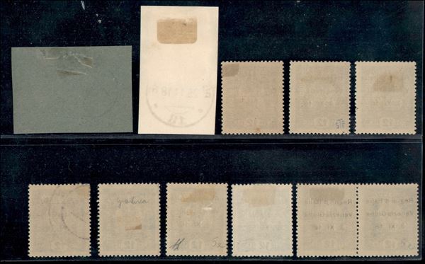 1918 - 12 heller (5) - piccolo insieme di 6 esemplari nuovi e 4 esemplari usati con diverse varietà di soprastampa - gomma originale/usato