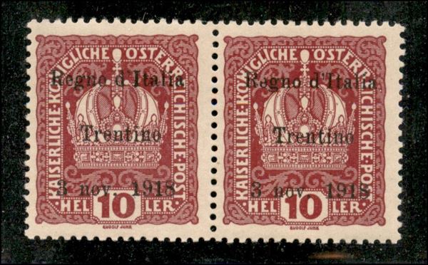 1918 - Coppia del 10 heller (4) con I di Italia grossa - gomma integra