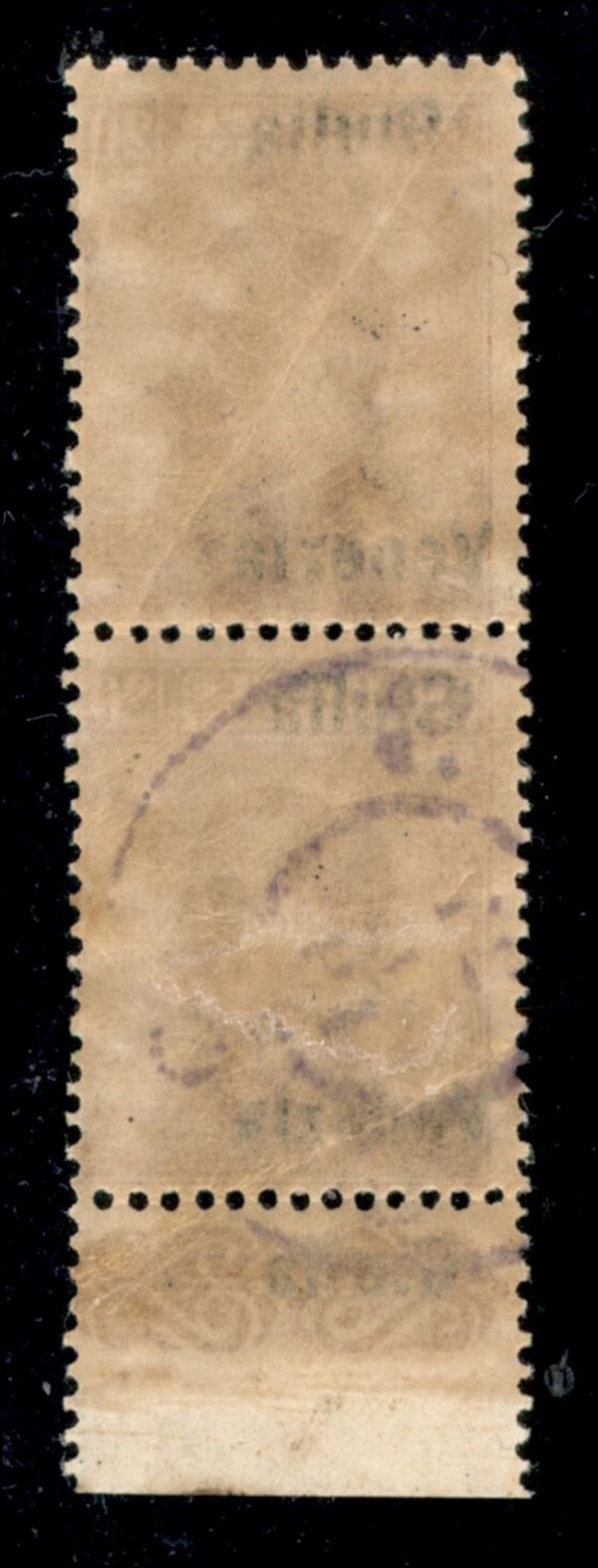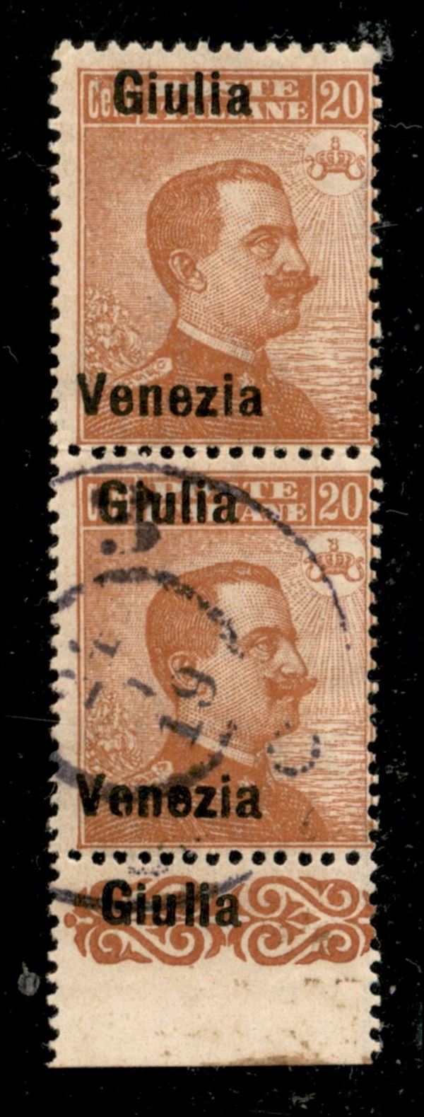 1918 - Coppia del 20 cent Michetti (23d + 23db) con soprastampa spostata in alto a sinistra - Giulia Venezia sull'esemplare superiore (nuovo) e uguale sull'esemplare inferiore (usato) con pił Giulia ripetuto sul bordo - interessante insieme
