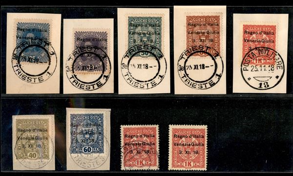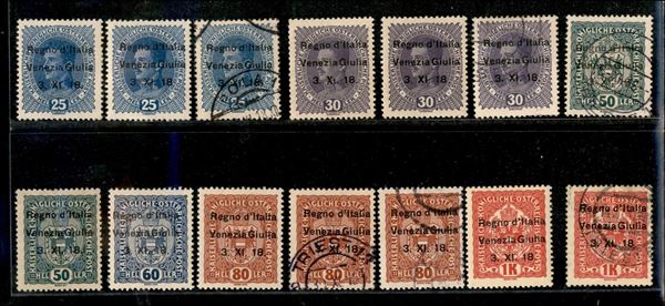 1918 - Piccolo insieme di 9 esemplari nuovi e 14 esemplari usati con diverse varietà di soprastampa - 40 heller da esaminare - gomma integra/originale/usato
