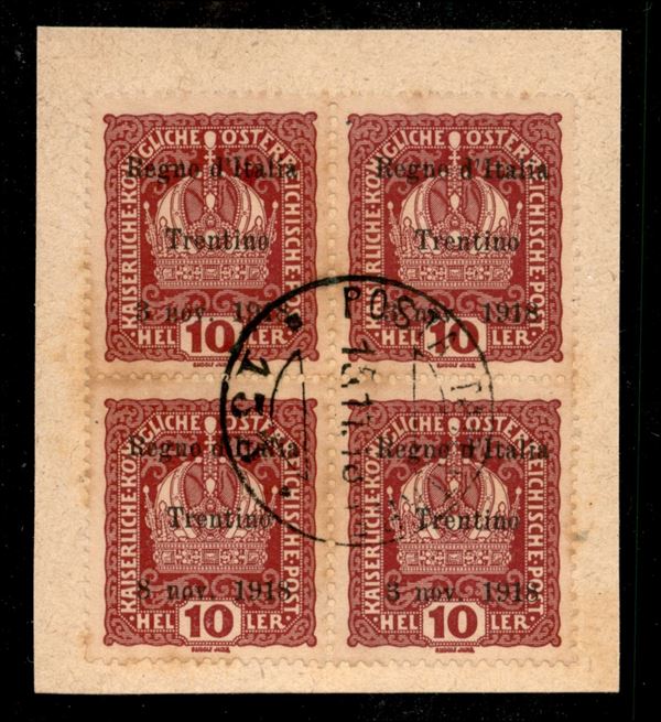 1918 - Quartina del 10 heller (4d) con 8 nov. invece di 3 nov. - Posta Militare 133 del 15.11.18