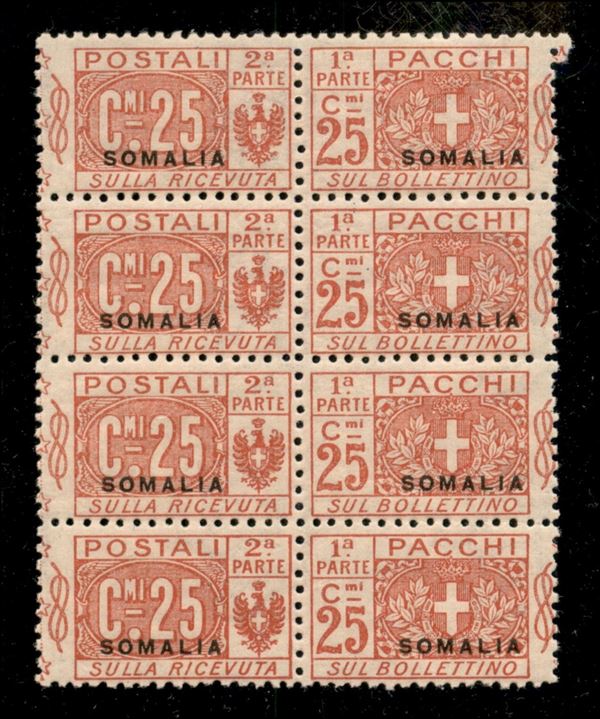 1923 - 25 cent (15 - parti invertite) - striscia di quattro - gomma integra - ottimamente centrati (960+)
