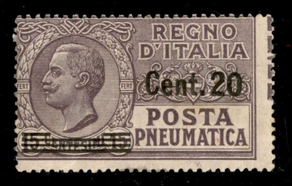 1925 - 20 cent su 15 (6 - Posta Pneumatica) con dentellatura verticale spostata e parti di diciture marginali a destra - gomma integra - non catalogato