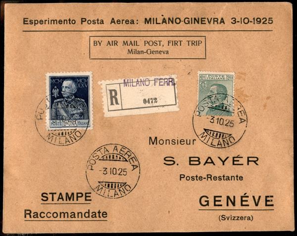 1925 (3 ottobre) - Milano Ginevra - Primo Volo Postale - Longhi 1409 - raccomandata