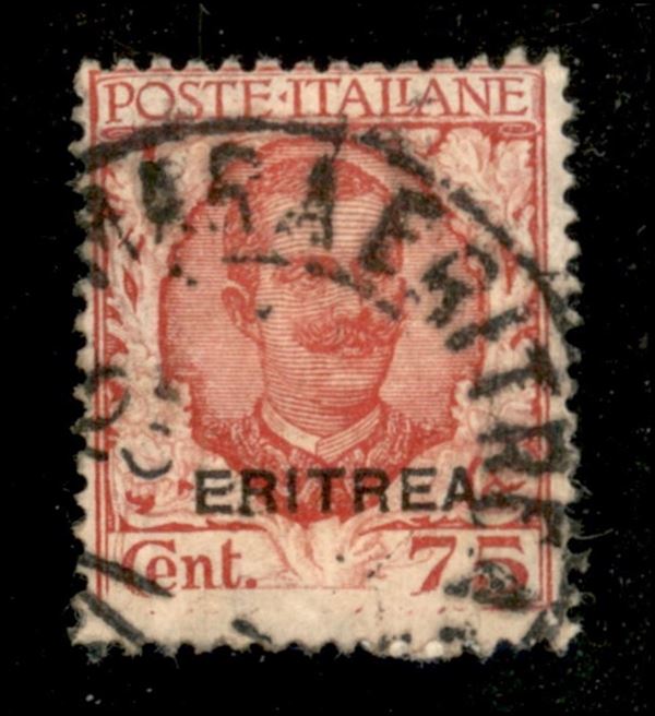 1926 - 75 cent Floreale (113 varietà) usato - stampa mancante in basso - non catalogato