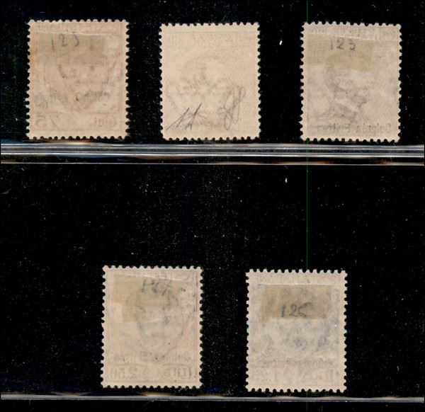 1928/1929 - Soprastampati (123/127) - serie completa - gomma originale con traccia di linguella