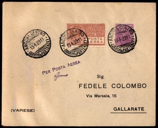 1929 (19 aprile) - aerogramma da Ancona Gallarate - (225 + 2A Aerea)