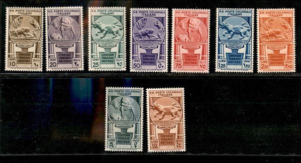 1933 - Cinquantenario Eritreo (23/31 + 51/21 Aerea) - emissione completa - gomma originale con traccia di linguella