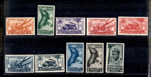 1933 - Decennale (32/41 + 22/29 Aerea) - emissione completa - gomma originale con traccia di linguella