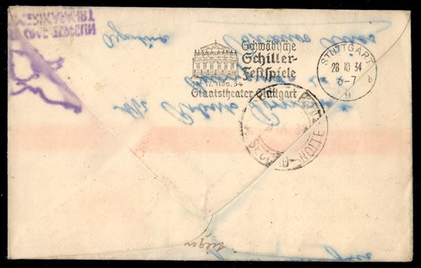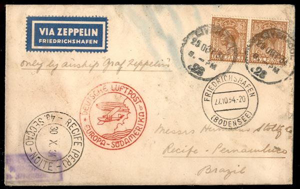 1934 (27 ottobre) - Zeppelin - Europa Sud Amerika - aerogramma da Liverpool a Pernambuco - segni evidenti di umidità