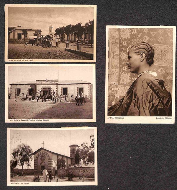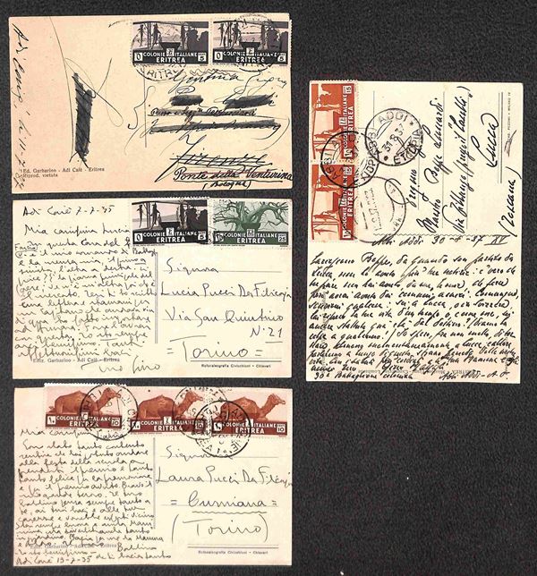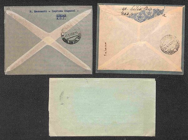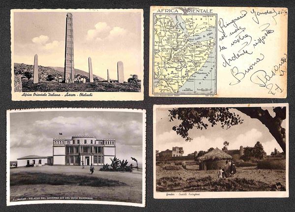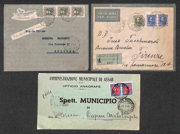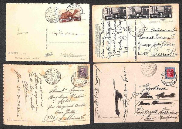 1935/1941 - Abbi Addi + Adi Caič (3) + Assab + Gondar (3) + Harar (3) - otto cartoline + tre buste con diverse affrancature del periodo