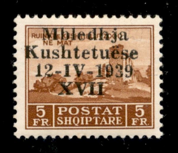 1939 - 5 franchi (11bd varietà) con soprastampa spostata in alto e a sinistra - gomma originale